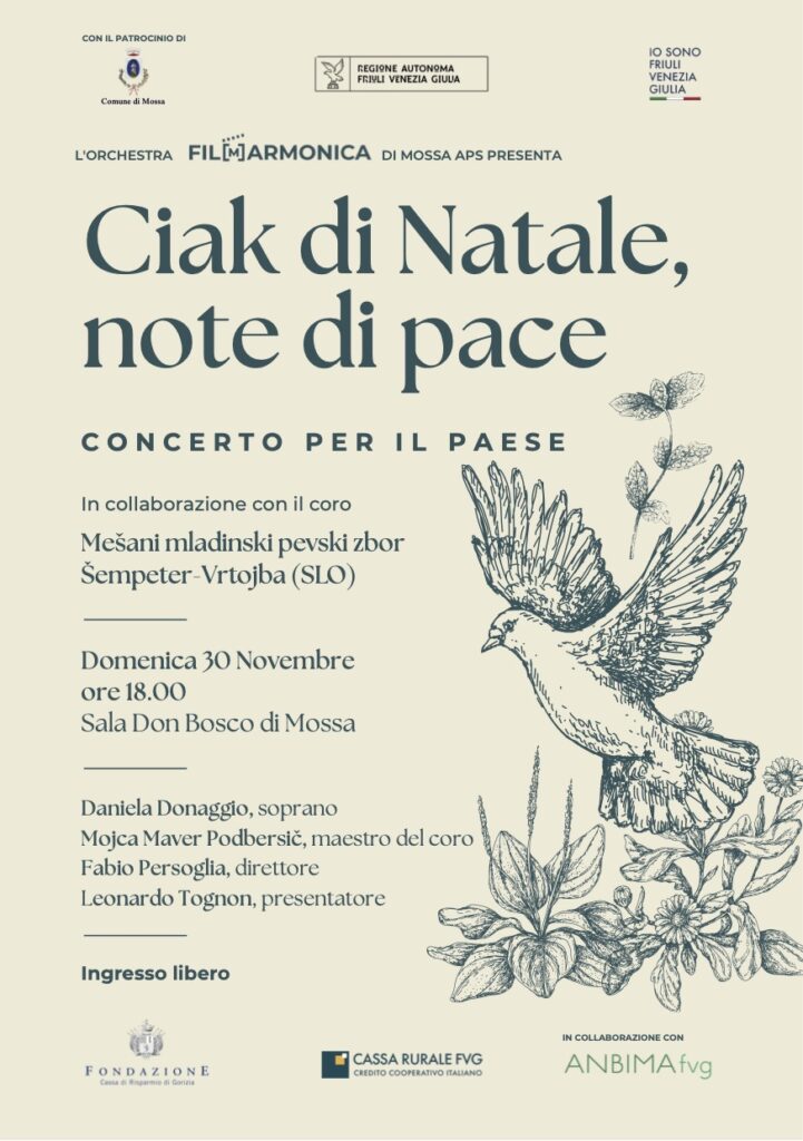 L’Orchestra Fil(m)armonica di Mossa presenta “Ciak di Natale, note di pace” in collaborazione con il coro Mešani mladinski pevski zbor Šempeter-Vrtojba (SLO).