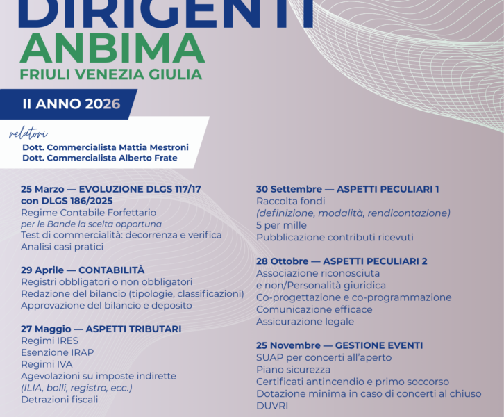Si rinnova il ricco cartellone di concerti nel periodo delle festività natalizie, organizzati dalle bande associate ad ANBIMA nella provincia di Udine….